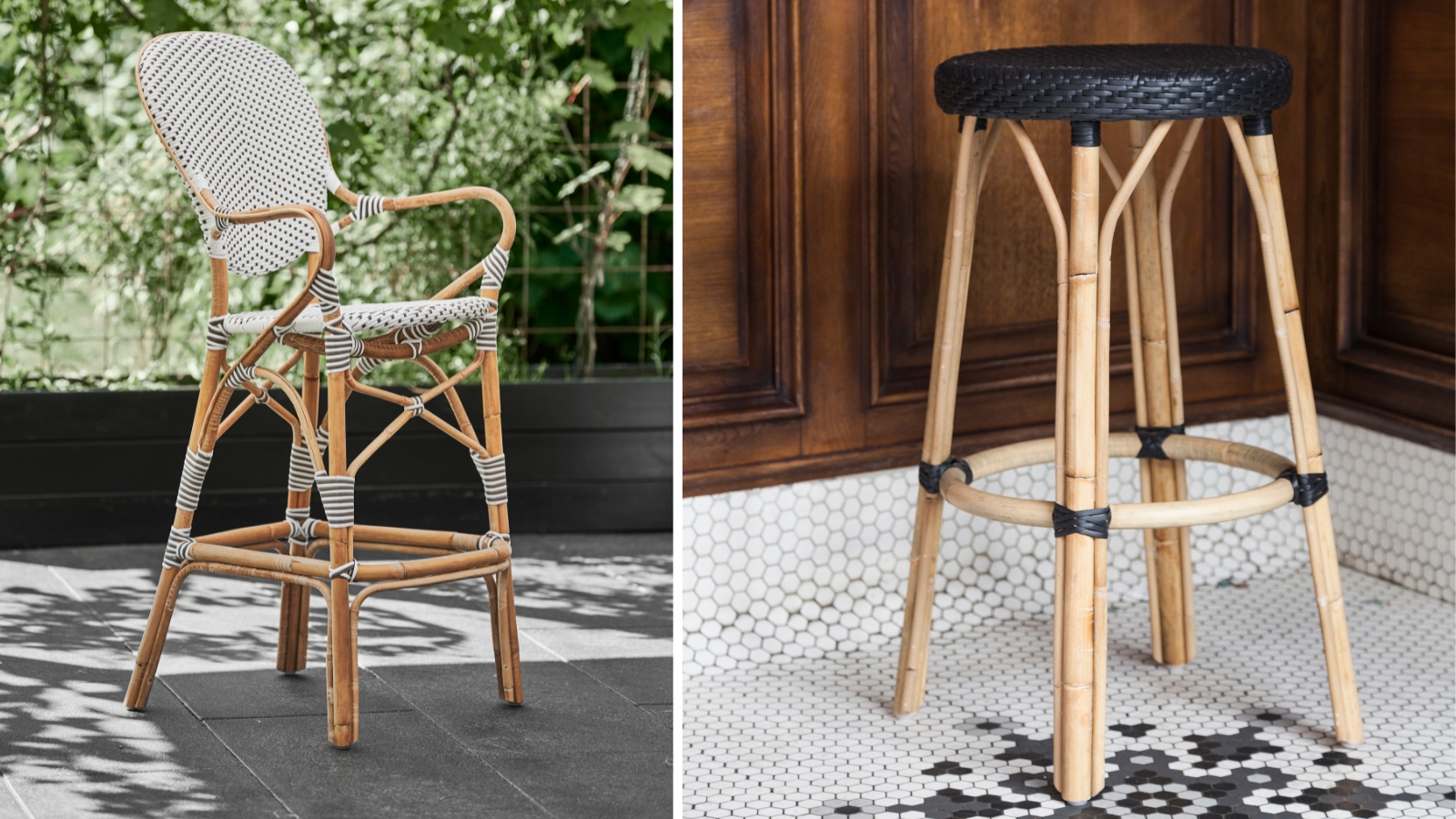 Rattan barstools that combine airy textures with supportive seating, perfect for bars and breakfast nooks.