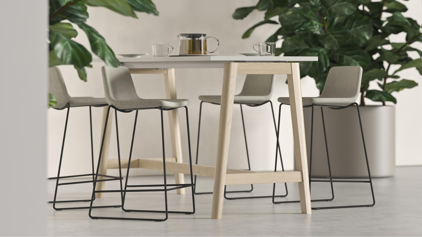 Material: MFC or HPL tabletop; powder-coated metal frame and legs;