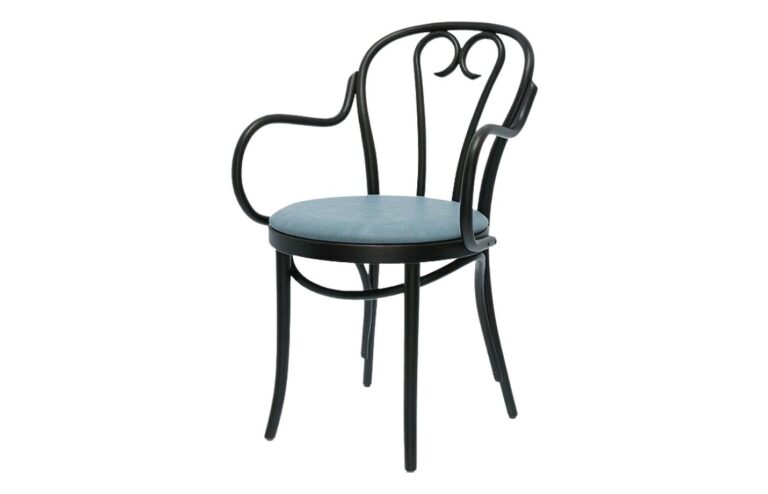 Material: Walnut stained ash, upholstered seat & back in fabric or faux leather with piping.