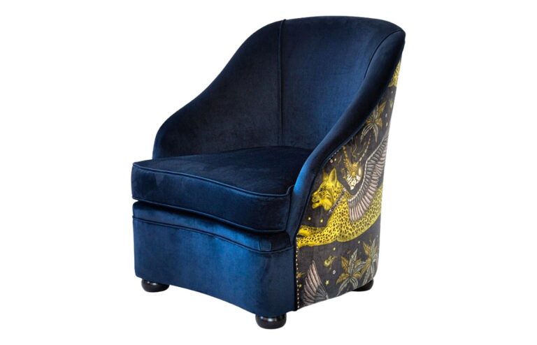 Material: Solid beech wood frame. Fully upholstered with tufted back and 4 gold or chrome-plated leg ends.