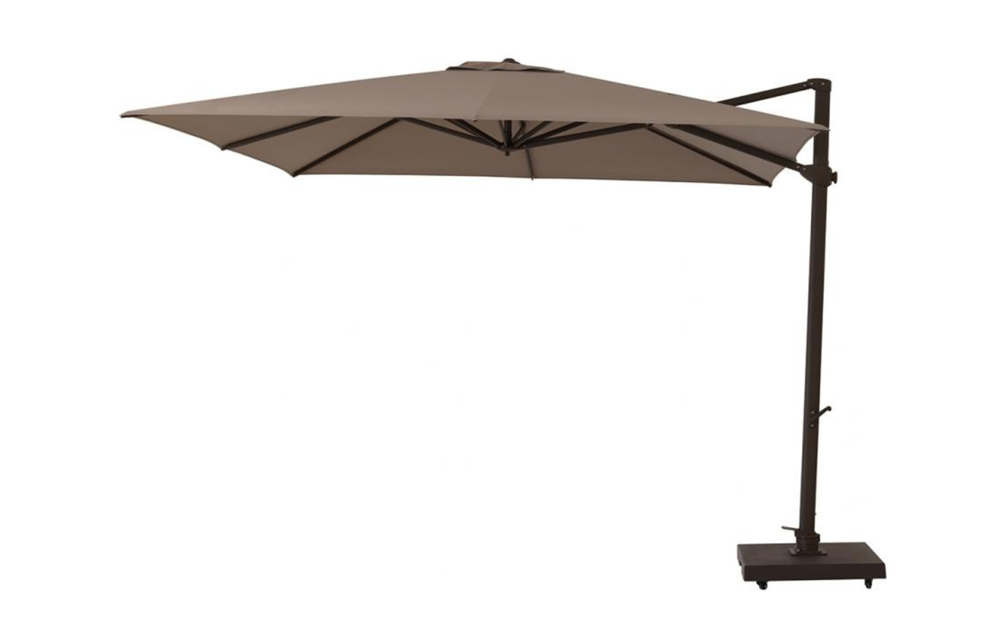 Finishes/Colors: Frame: White, Graphite & Mocca Canopy: White, Dove & Dark grey Features: Retractable opening system allows umbrella closure parallel to the pole, 360° Rotation, Canopy opening and closing system with a removable hand crank. Accessories: Light with rechargeable battery and Bluetooth speaker with LED light (Not included – Available on request)